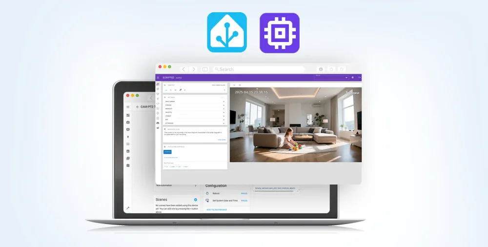 Sonoff CAM Pan-Tilt 2 je skvělá volba pro domácí dohled nebo monitoring v kanceláři. Díky kombinu motorického otočení, AI detekce a efektivního nočního vidění (IR i barevného) pokryje každý kout místnosti bez slepých zón. Dvousměrné audio umožňuje komunikaci s rodinou či domácími mazlíčky. Kamera podporuje napojení na Home Assistant či NVR (RTSP/ONVIF), včetně možnosti velmi rychlého ovládání přes appku a časované scénáře. Privacy mode garantuje ochranu soukromí – čočku lze mechanicky zakrýt.